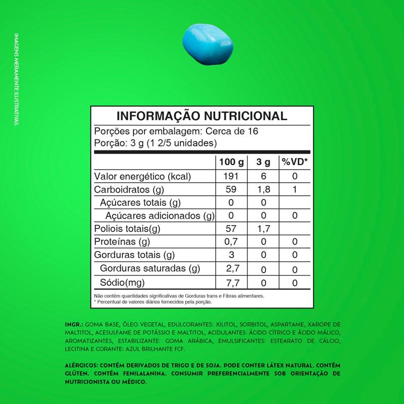 Chiclete sem açúcar, sabor refrescante, embalagem em pote para maior praticidade e conservação