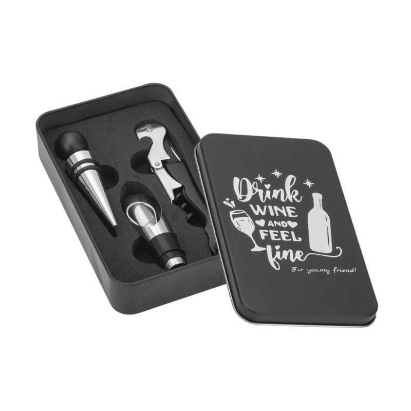 Kit para Vinho com Estojo de Lata 3 Peças
