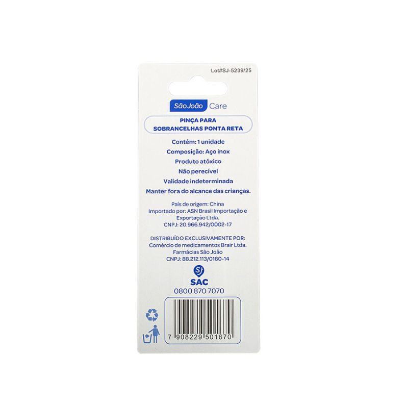 Pinça Para Sobrancelha Aço Inox Reta Cromado São João Care