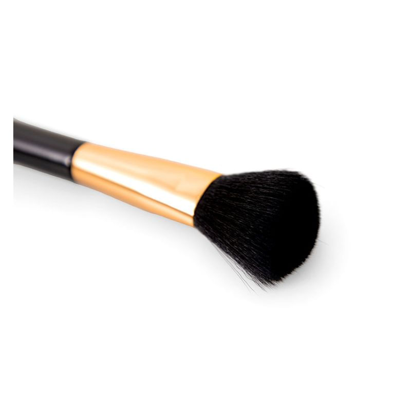 Passe o pincel sobre o blush e aplique com movimentos leves e circulares até alcançar o efeito desejado