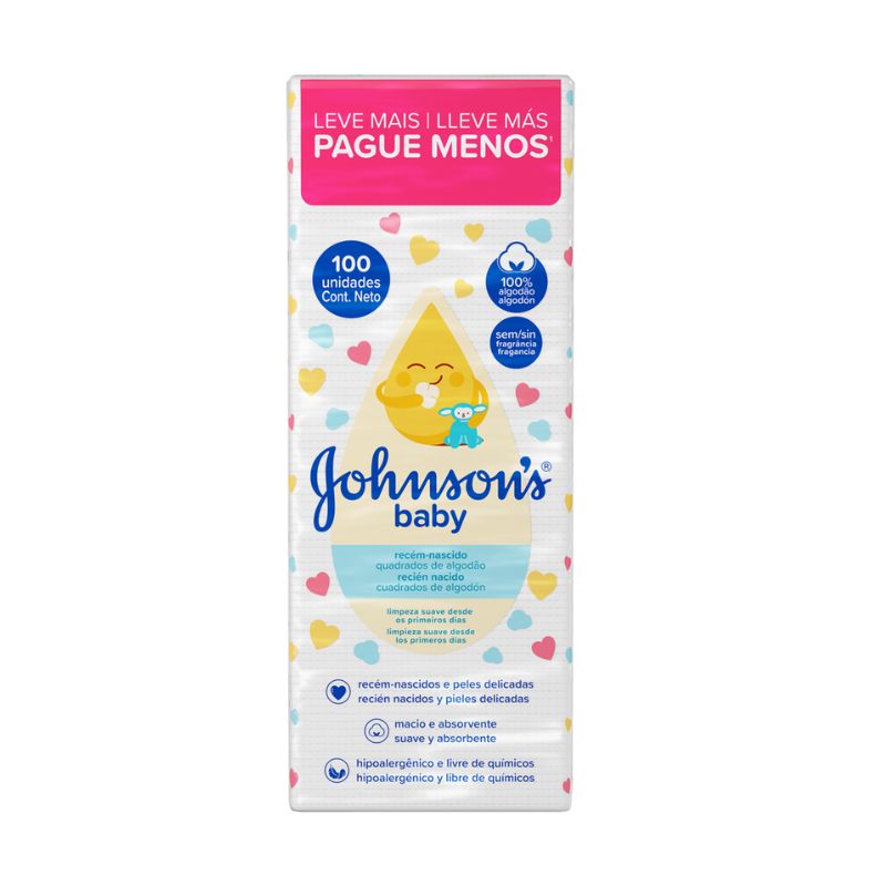 Algodão Johnsons Baby Quadrado 100 Unidades