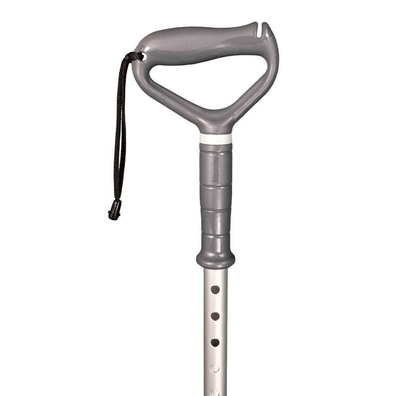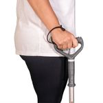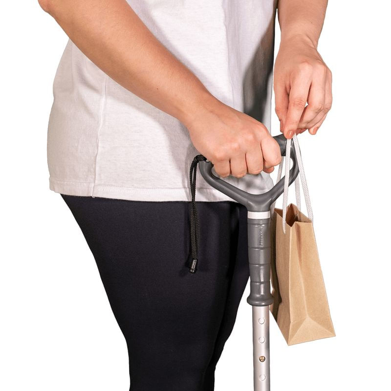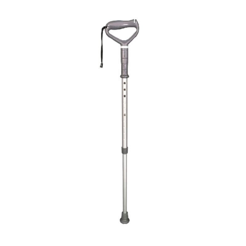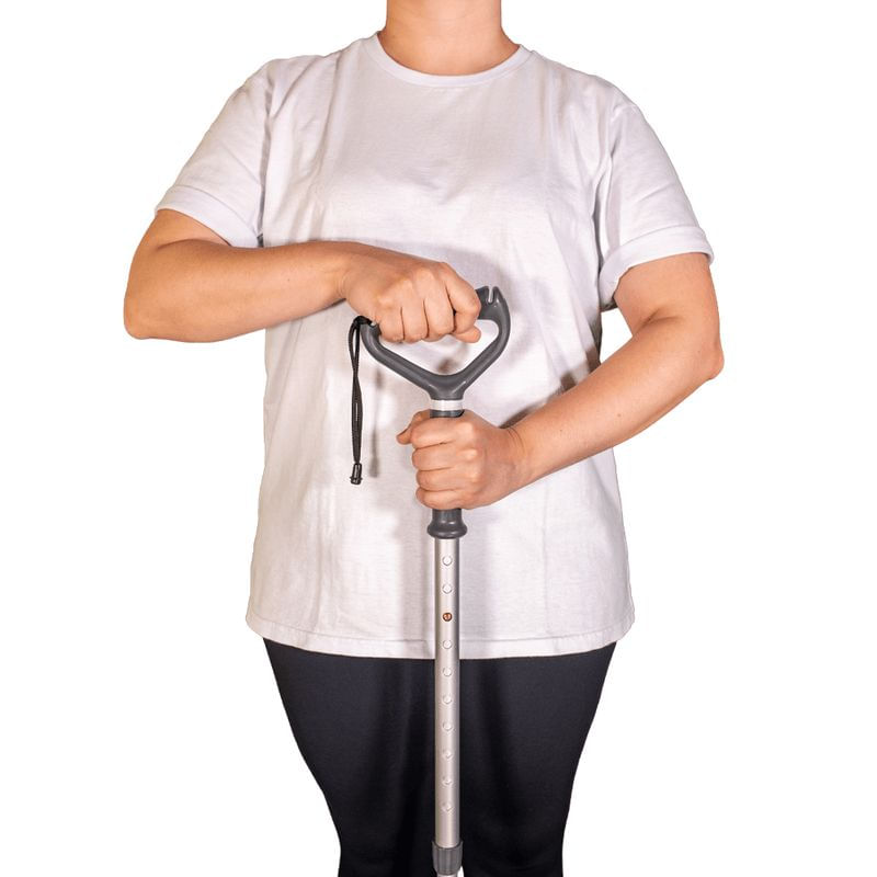 Ajuste a altura com o pino-mola para que, em postura ereta, os cotovelos fiquem levemente flexionados (20 a 30°). Utilize no lado oposto à lesão ou conforme orientação profissional