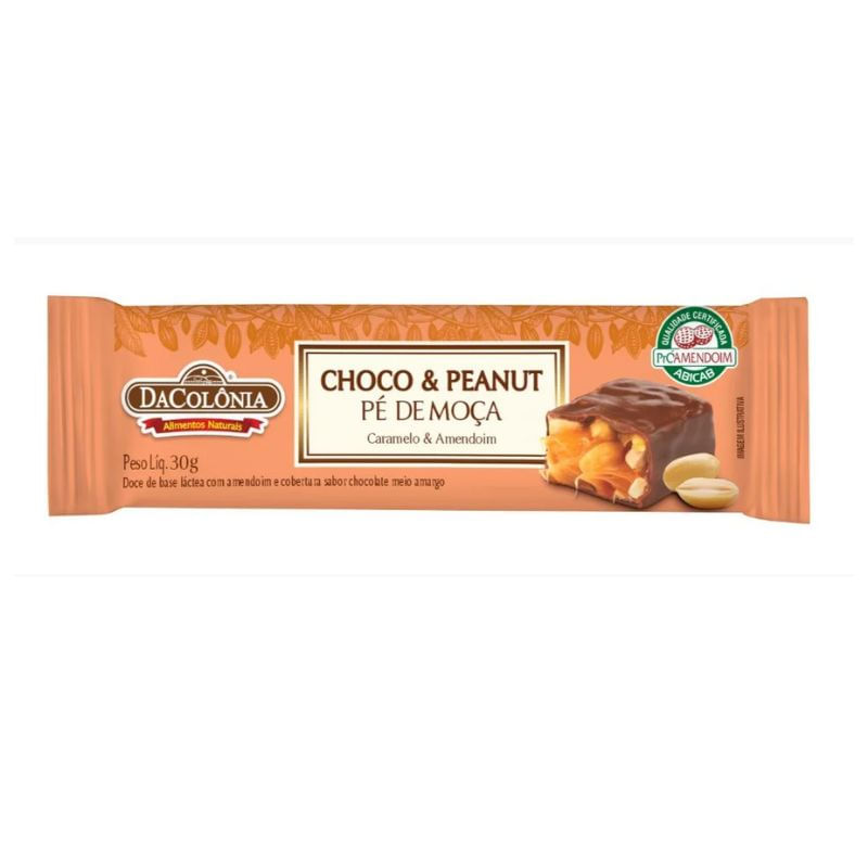 Amendoim, leite condensado, cobertura sabor chocolate meio amargo, açúcar, xarope de glicose, leite integral em pó, gordura vegetal de palma, soro de leite, sal e conservante sorbato de potássio.