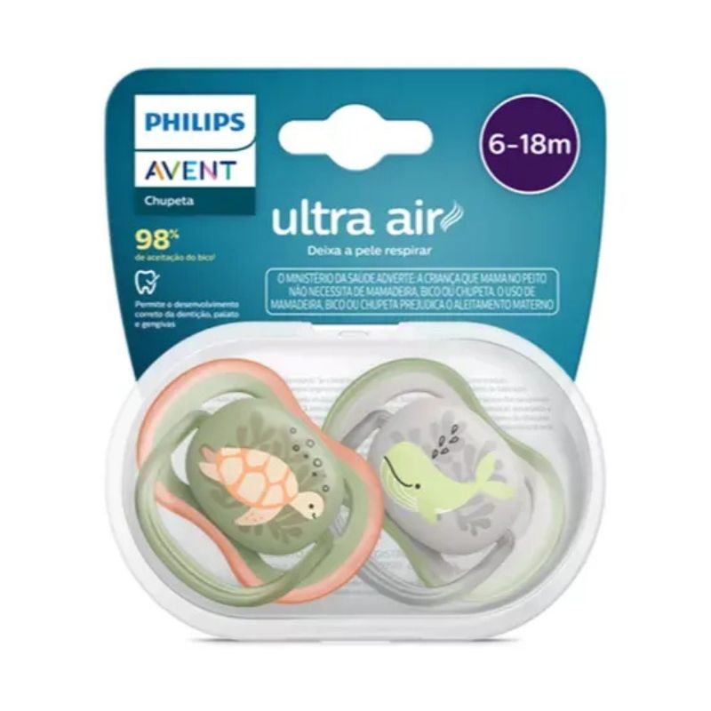 Chupeta Avent 6-18 Meses Ultra Air Dupla Verde e Cinza