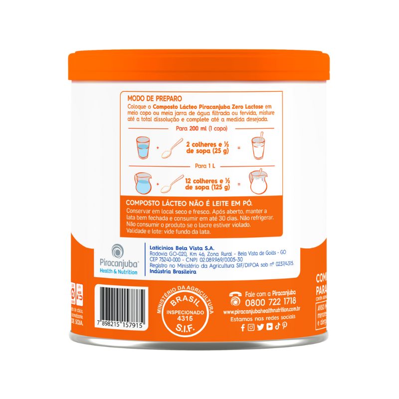 Composto Lácteo Zero Lactose Piracanjuba 380g