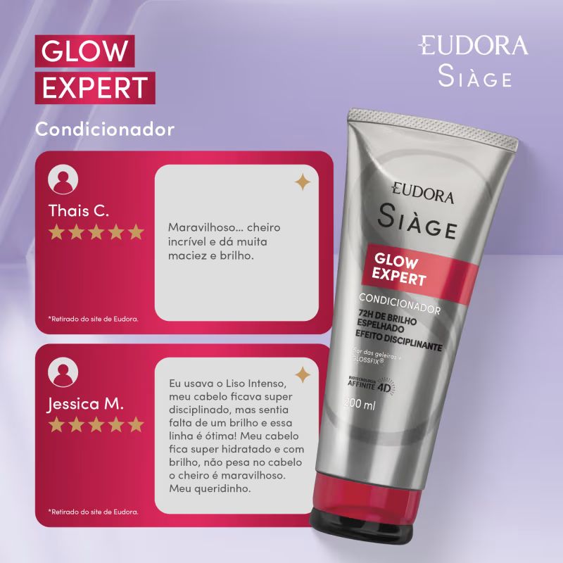 Usar o Condicionador Eudora Siage 200ml Glow Expert é muito fácil. Aplique o produto nos cabelos úmidos após o uso do shampoo, distribuindo-o uniformemente por todo o comprimento dos fios. Deixe agir por alguns minutos para que os ingredientes nutritivos possam penetrar profundamente na fibra capilar. Enxágue bem para remover todo o produto dos cabelos. O condicionador pode ser usado sempre que você lavar os cabelos, ou conforme a necessidade de hidratação e nutrição dos fios.