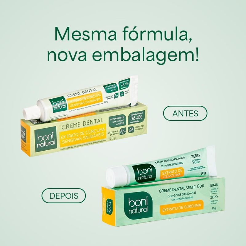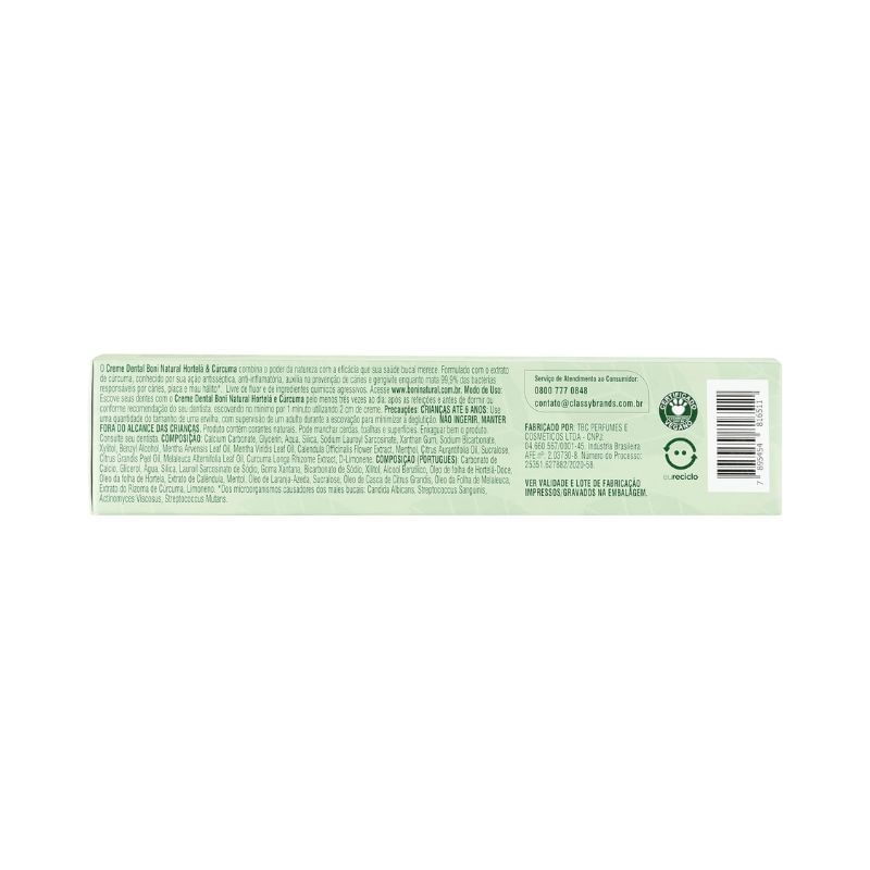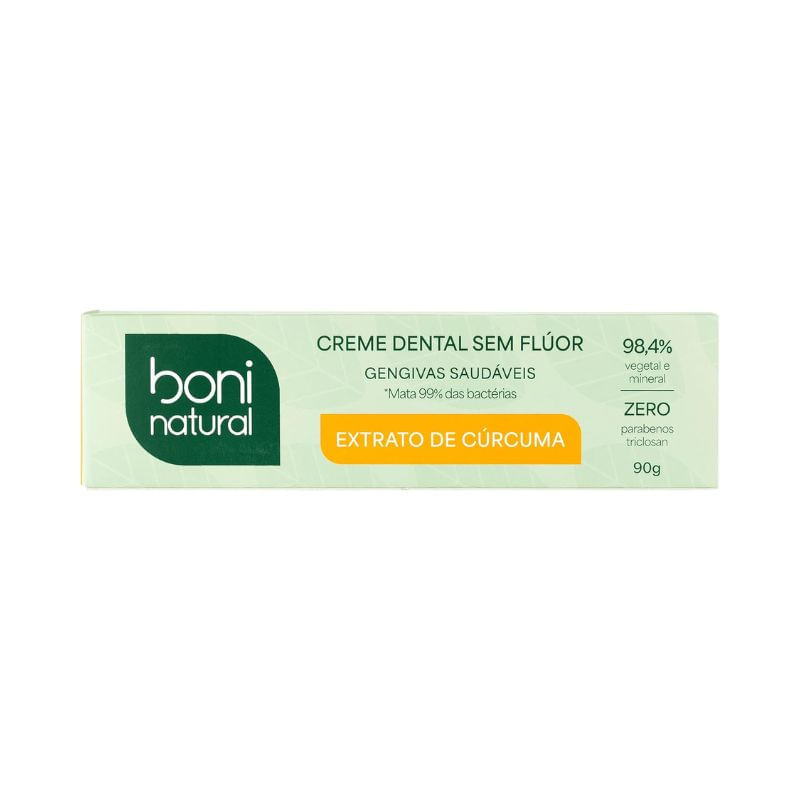 Creme Dental Boni Natural Cúrcuma e Hortelã sem Flúor sem Parabenos sem Triclosan 90g