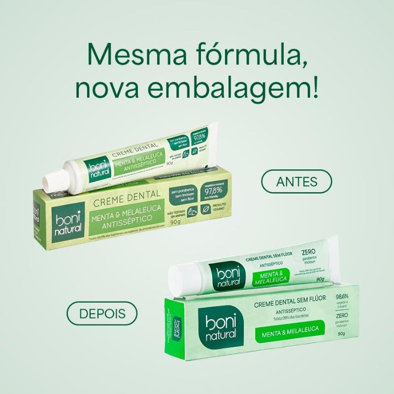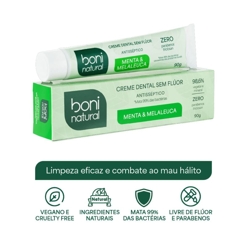 HigieneHigiene BucalPasta De DenteCreme Dental Boni Natural Menta e Melaleuca sem Flúor sem Triclosan 90g