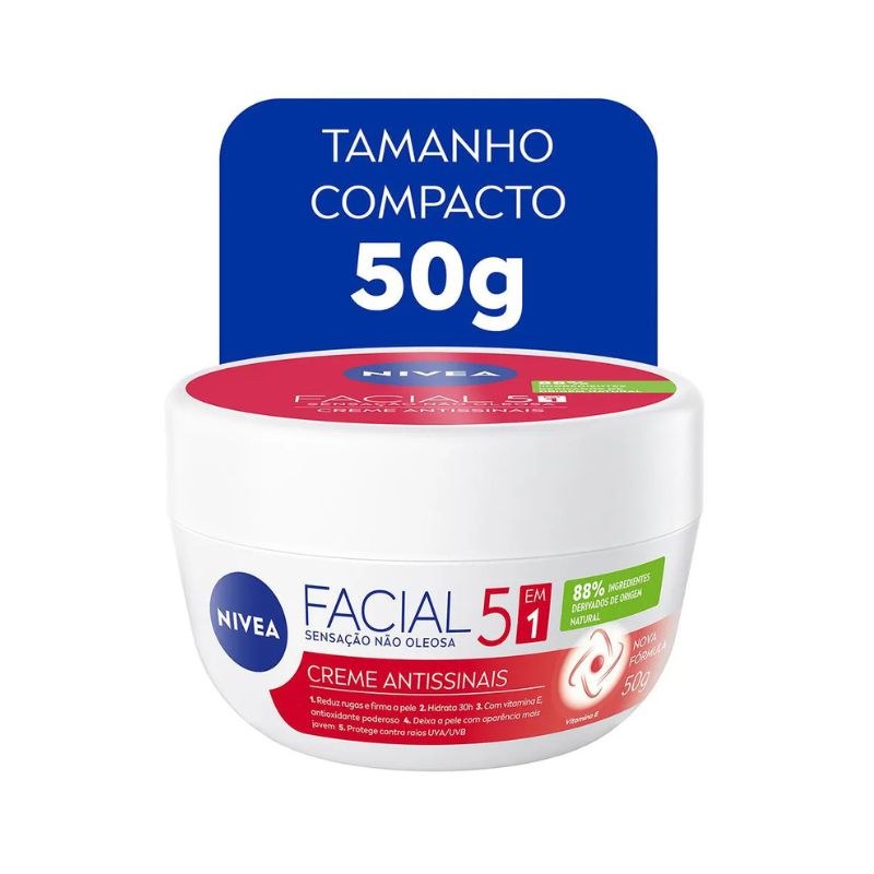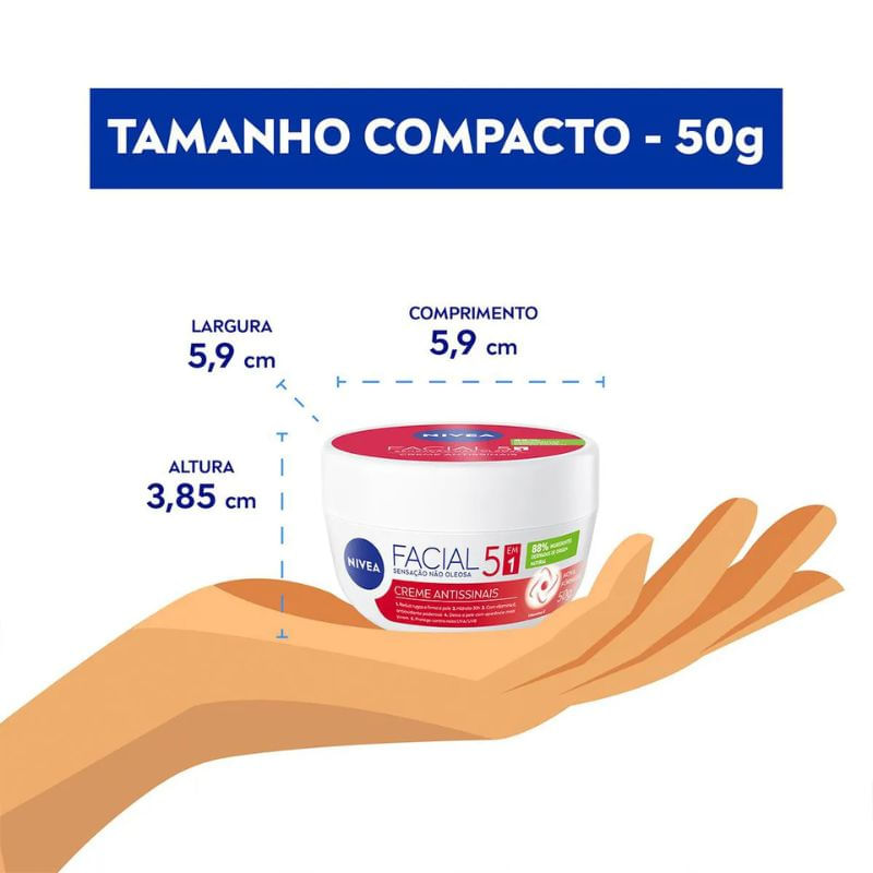 Aplique o creme facial Nivea sobre a pele limpa e seca, espalhando com movimentos suaves até completa absorção. Use diariamente, de manhã e à noite.