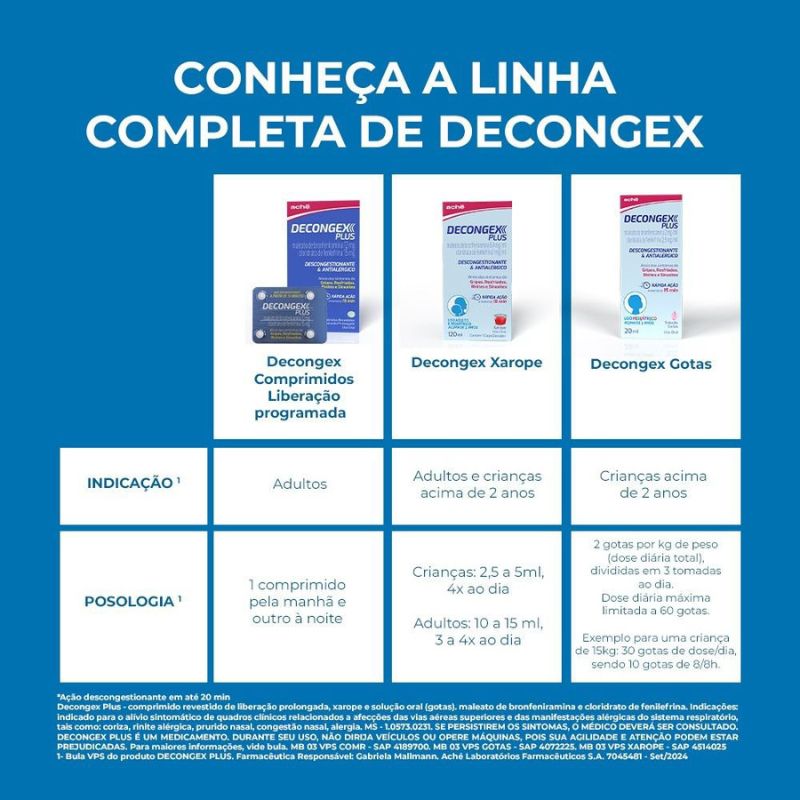 Decongex Plus Maleato de Bronfeniramina 2mg/5ml + Cloridrato Fenilefrina 5mg/5ml Xarope 120ml Aché