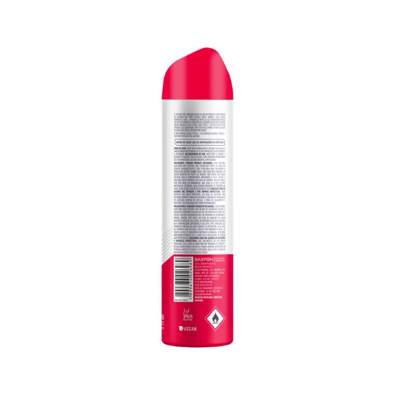 Cuidado, Produto Inflamável. Uso Externo. Conteúdo sob pressão. Não pulverizar perto de fogo, não perfurar nem incinerar a embalagem mesmo quando vazia