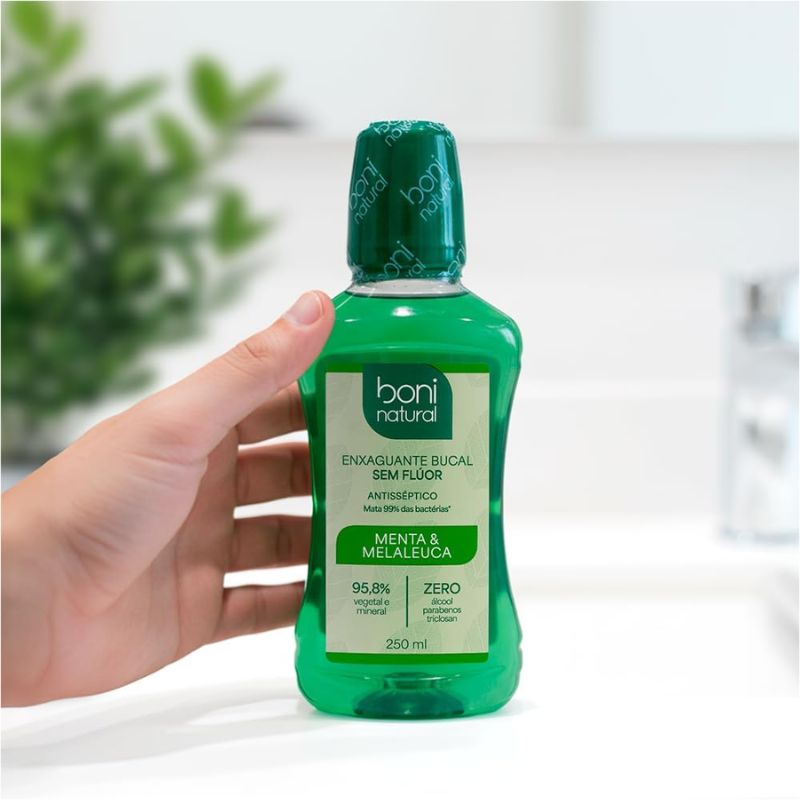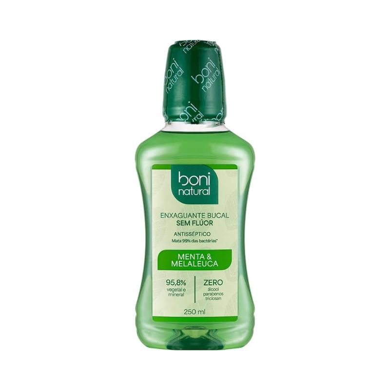 HigieneHigiene BucalEnxaguante BucalEnxaguante Bucal Boni Natural Menta e Melaleuca Zero Álcool sem Flúor 250ml