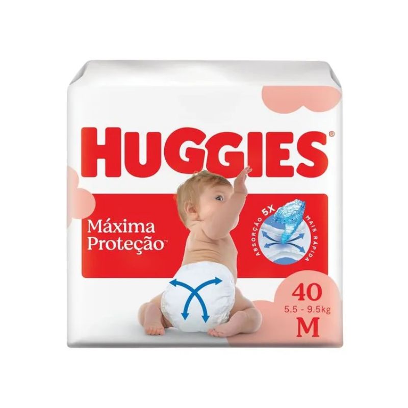 Fralda Descartável Infantil Huggies Máxima Proteção M Pacote 40 Unidades
