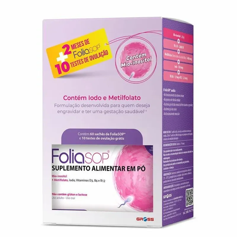 Kit Foliasop 60 Sachês + 10 Testes de Ovulação Gross