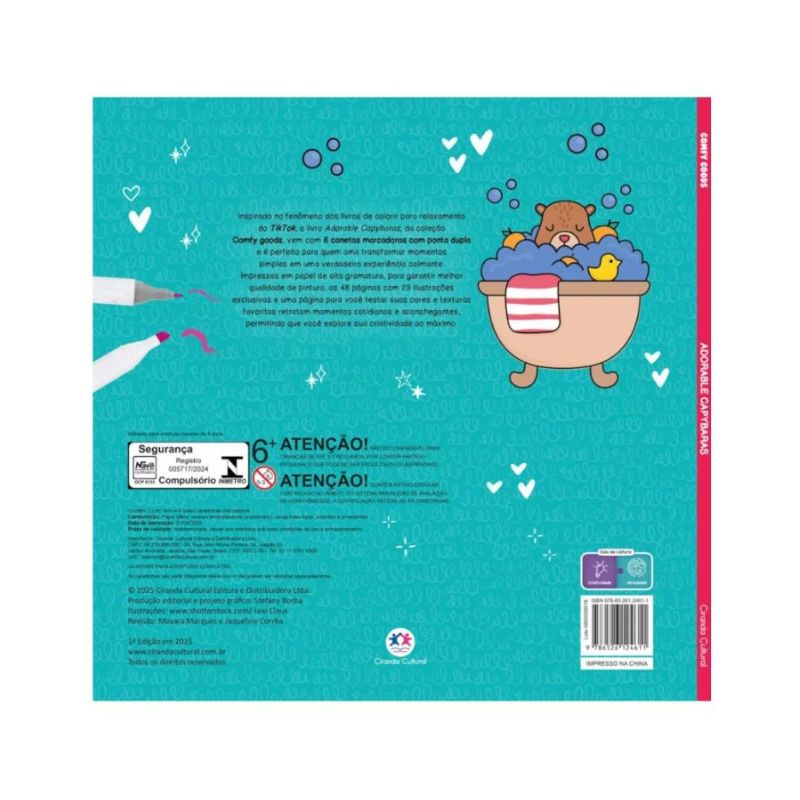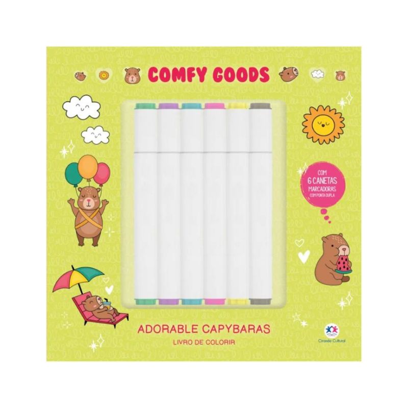 Kit Livro Ciranda Cultural Adorable Capybaras com 6 Canetas