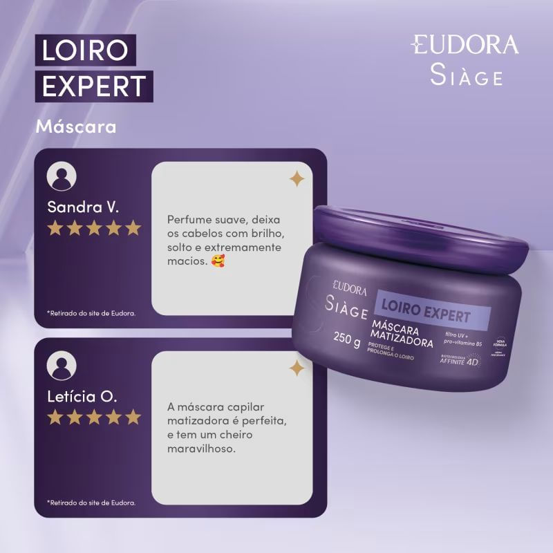 Máscara Capilar Eudora 4D Matizadora Loiro Expert 250g