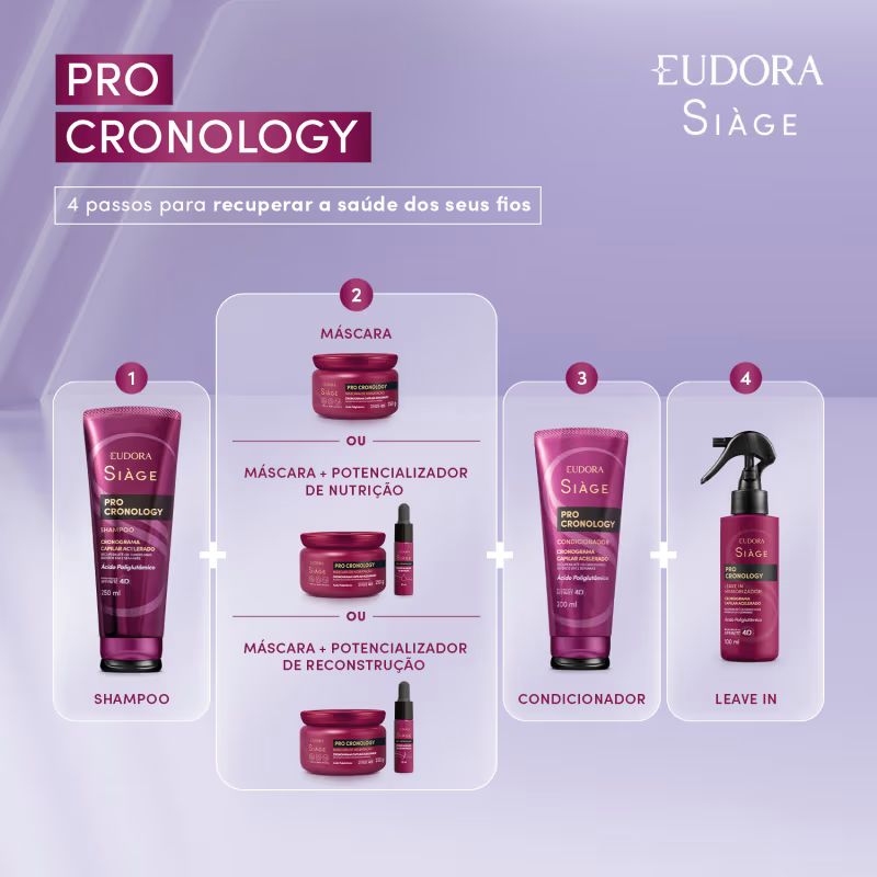Após utilizar o Shampoo, aplique a máscara no comprimento e pontas. Massageie os fios e deixe agir por 5 minutos. Enxágue.
