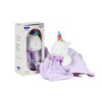 Naninha em formato de unicórnio com pelúcia macia na cor lilás, ideal como companheira de sono para bebês