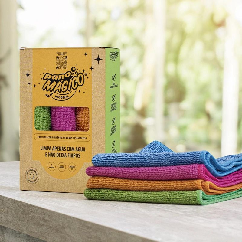 Umedeça o pano com água ou solução de limpeza adequada para a superfície a ser limpa. Passe o pano sobre as superfícies, fazendo movimentos suaves. Após o uso, lave o pano com sabão neutro ou detergente para remover sujeiras acumuladas. Deixe o pano secar completamente ao ar livre antes de guardá-lo.