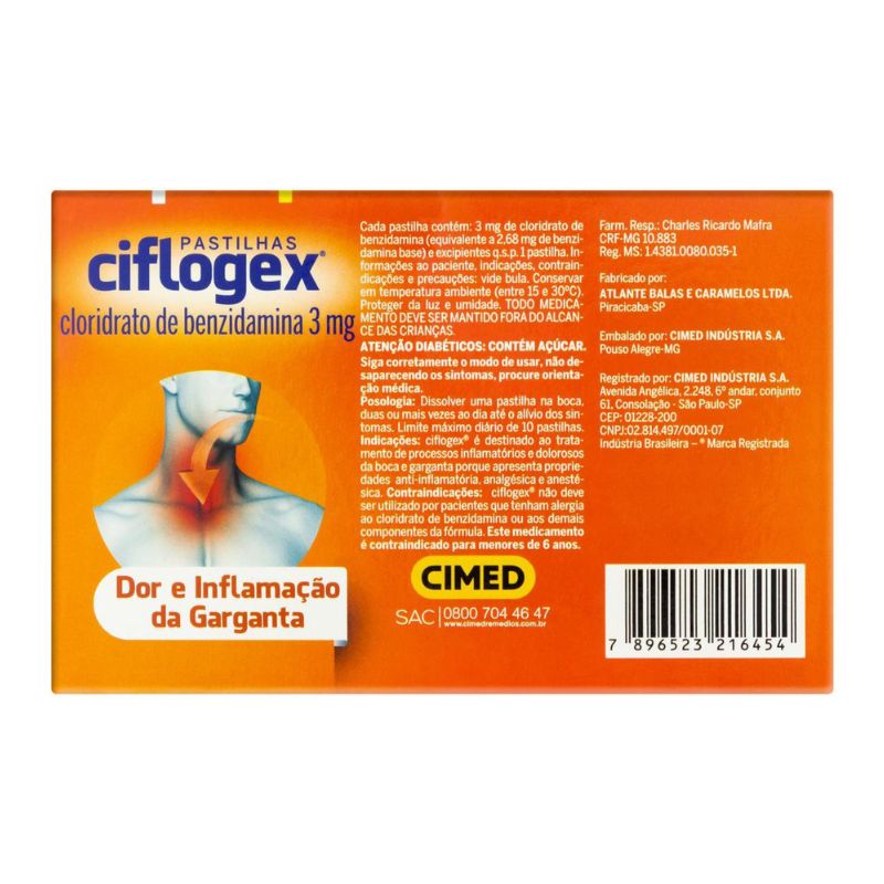 Ciflogex® é destinado ao tratamento de aftas [estomatites, mucosites e outras manifestações inflamatórias da mucosa bucal e da língua]; na dor de dente; na dor e inflamação da garganta e nos sintomas do resfriado e da gripe [amigdalites, faringites e laringites] e na dor pós-traumática [após procedimentos odontológicos, otorrinolaringológicos e bucomaxilofaciais como amigdalectomias, fraturas de mandíbula, cistos maxilares, calculoses salivares, extração dentária].