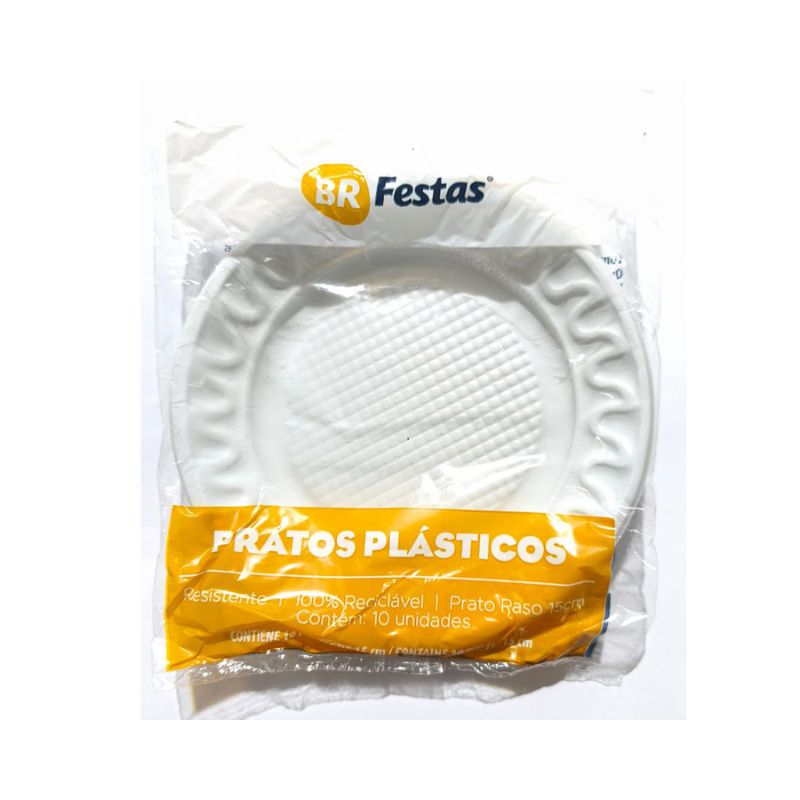 Casa E UtilidadesComemorações E EventosPrato Plástico BR Festas Branco 10 Unidades