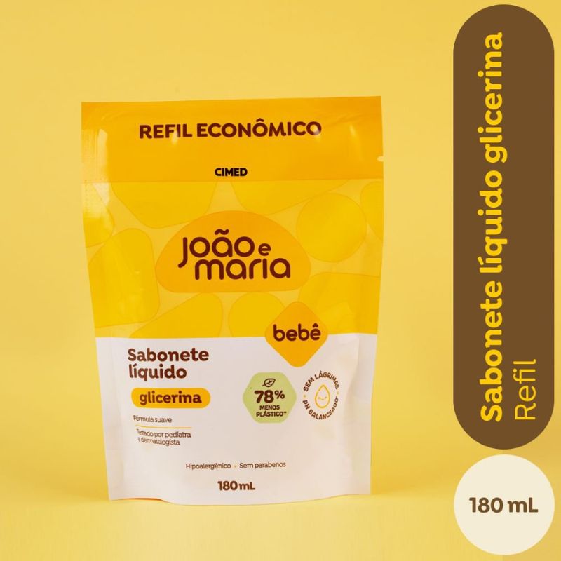 Infantil E GestanteBanho InfantilSabonete InfantilRefil Sabonete Líquido de Glicerina João e Maria 180ml