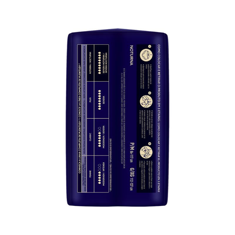 Coloque a roupa íntima como uma peça comum de vestuário, ajustando-a ao corpo. Certifique-se de que as laterais estejam bem posicionadas para conforto e segurança. Após o uso, rasgue as laterais para fácil remoção. Descarte adequadamente no lixo comum