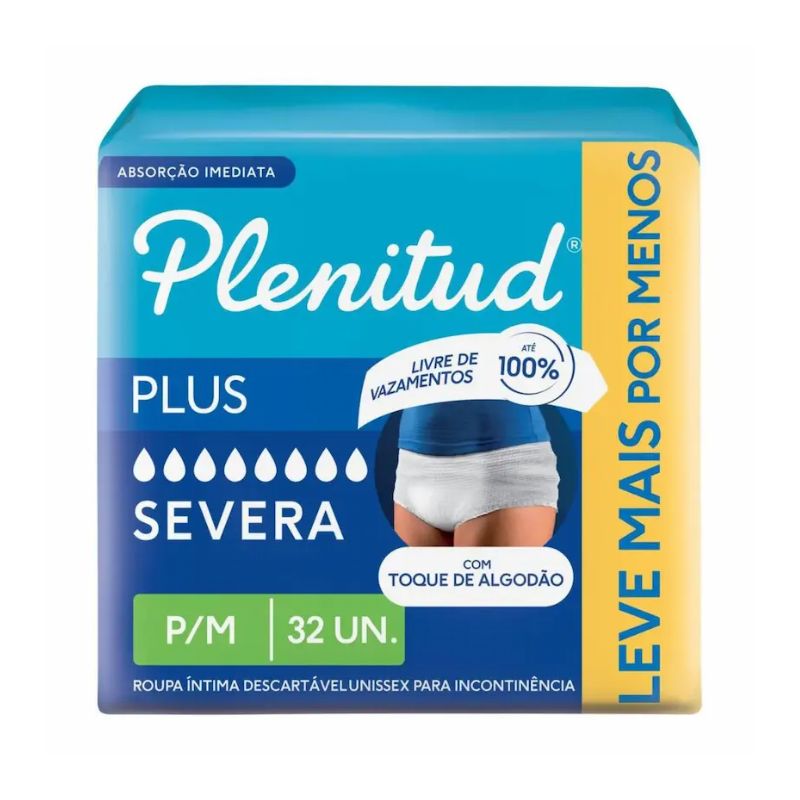 Roupa Íntima Descartável Unissex Plenitud Plus P/M Absorção Intensa 32 unidades