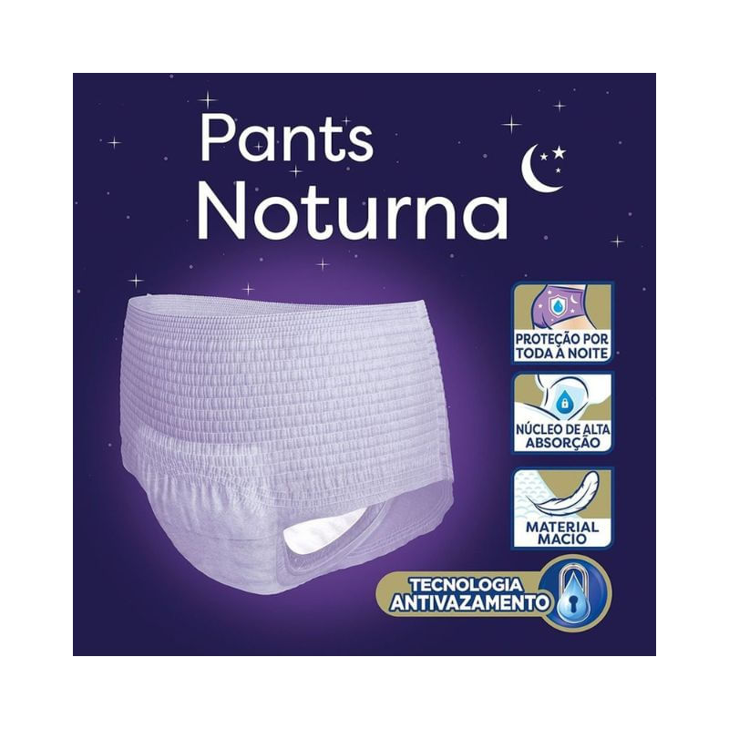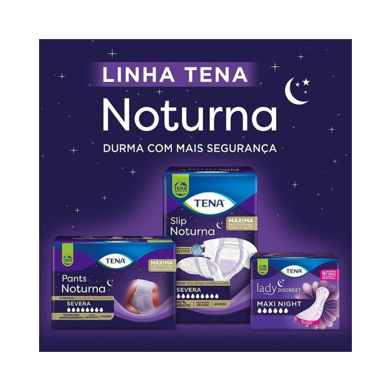 Tena Pants Noturna é uma roupa íntima descartável indicada para quem sofre com incontinência urinária moderada a severa. É unissex, segura, discreta e fácil de usar, basta vestir como se fosse uma roupa íntima