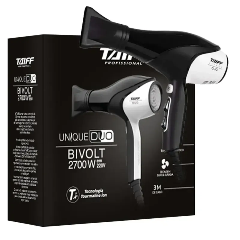 1 secador de cabelo Taiff Unique 2700W, 1 bico concentrador e manual de instruções